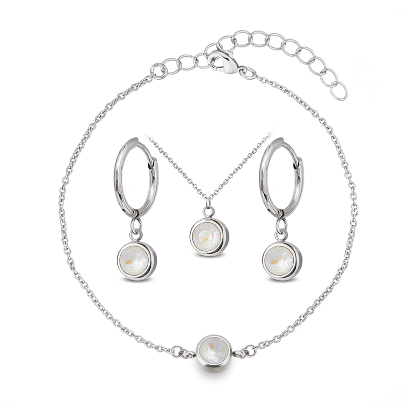 - 3-dílná ocelová sada Chaton Deluxe - náramek, náhrdelník a náušnice kruhy s krystaly Swarovski - Light Grey Delite