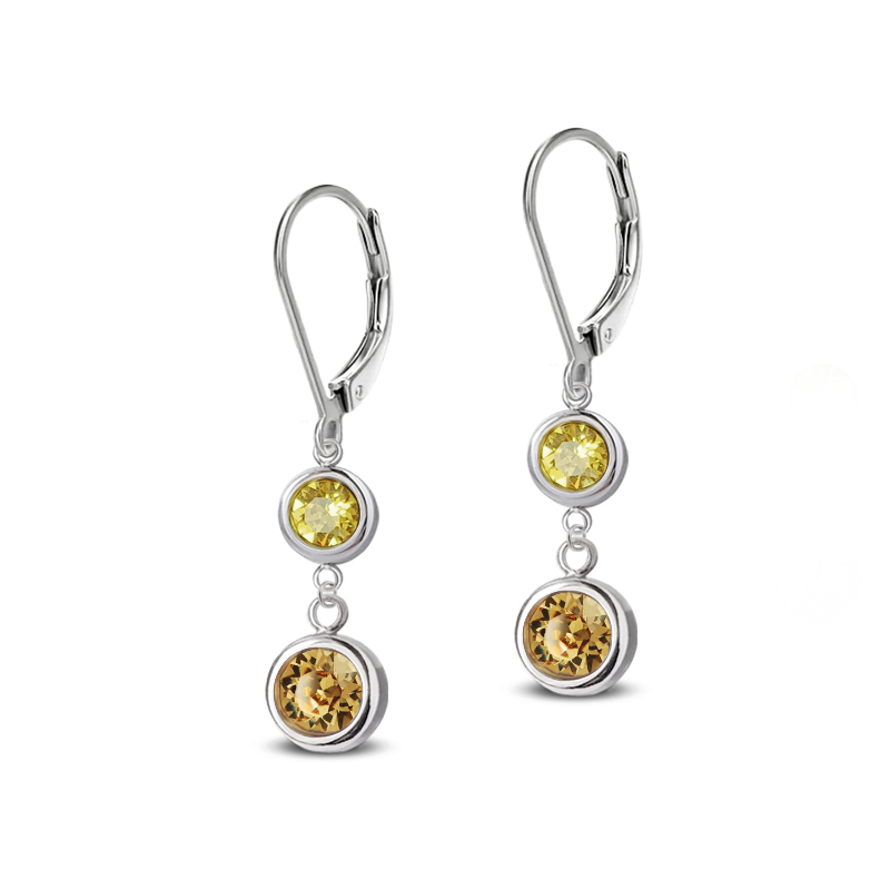 Ocelové visací náušnice Duo Chaton s krystaly Swarovski - Light Topaz/Light Colorado Topaz