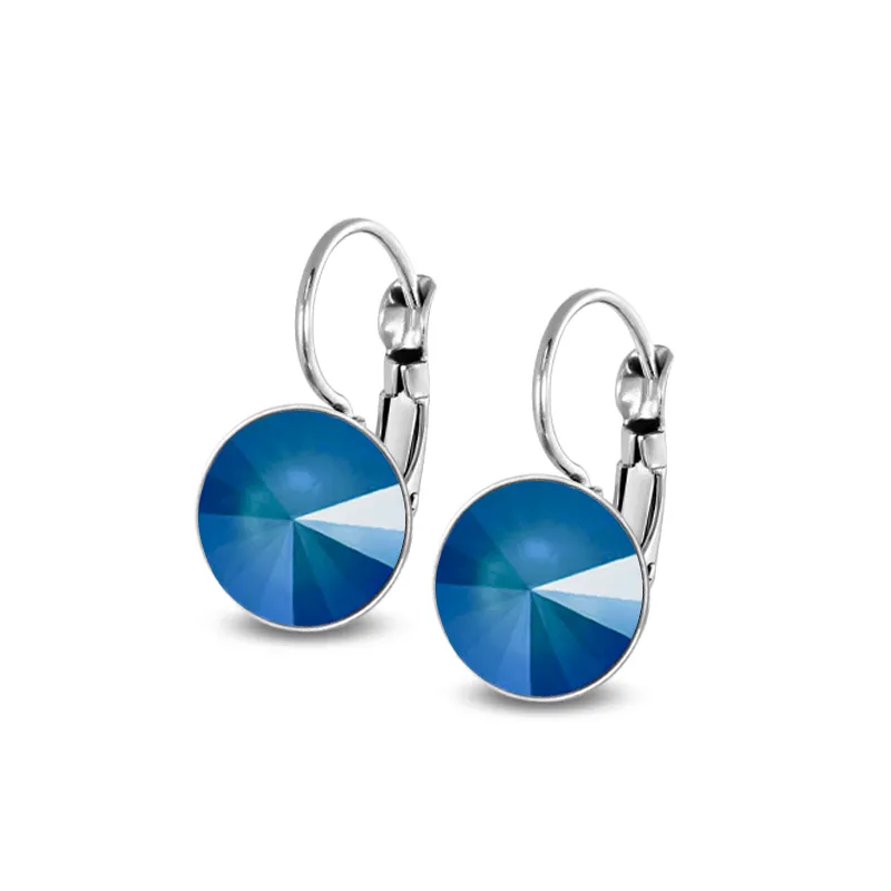 Ocelové visací náušnice Pastel Rivoli s krystaly Swarovski 12 mm - Royal Blue