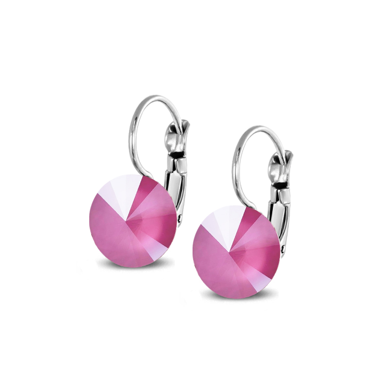Ocelové visací náušnice Pastel Rivoli s krystaly Swarovski - Peony Pink