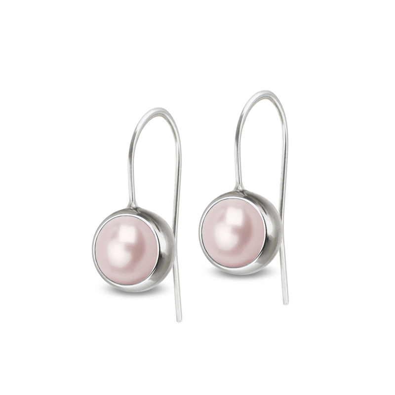 Ocelové visací náušnice s perlovými kabošony - háčkyjsou vyrobeny z kvalitní chirurgické oceli v lesklé povrchové úpravě a jsou osázeny světle růžovými perlami typu button o průměru 8mm pocházející z dílny rakouské společnosti Swarovski®. Voskové perle Swarovski jsou věrné imitace pravých perel.