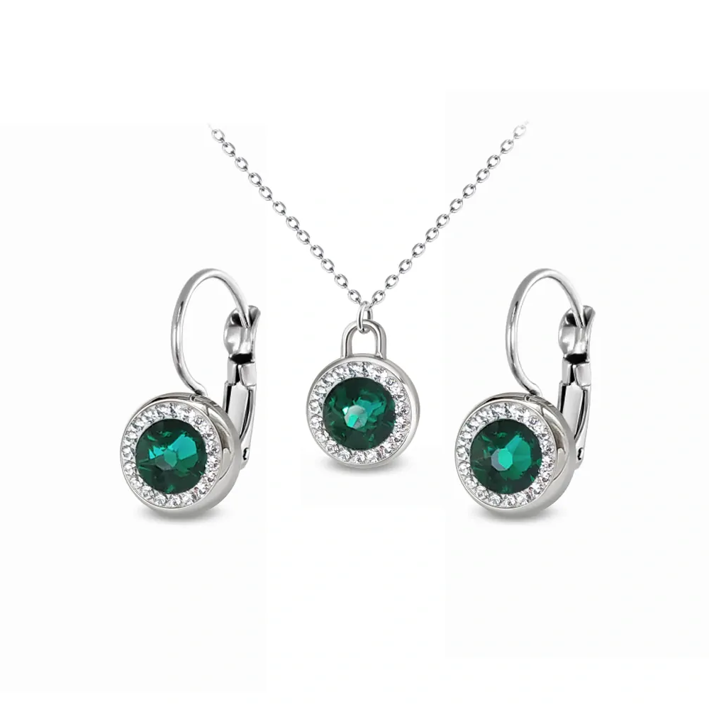 Ocelová sada šperků Xirius Rose Pavé s krystaly Swarovski - Emerald