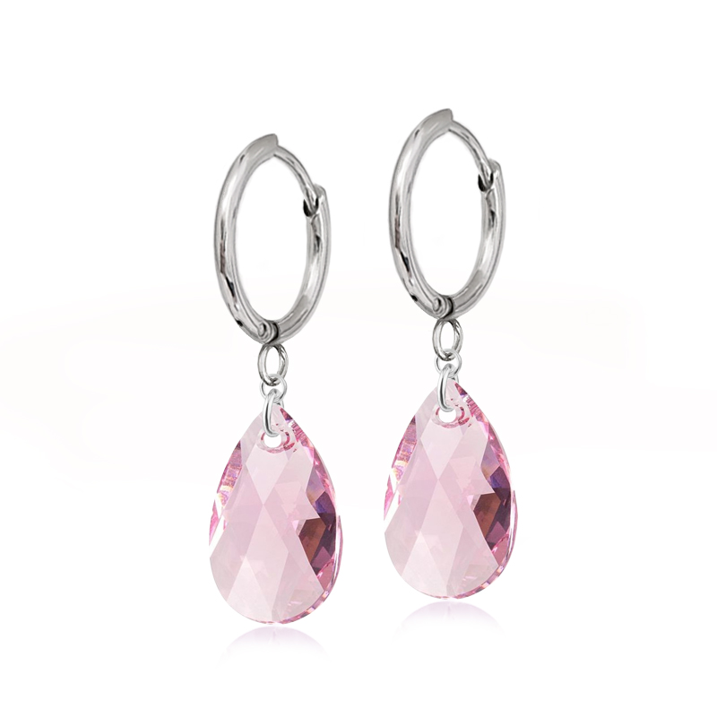 Ocelové náušnice ve tvaru kapky jsou vyrobeny z kvalitní chirurgické oceli v lesklé povrchové úpravě a osázeny krystaly v odstínu světle růžové a v brusu Pear-Shaped o velikosti 16mm pocházející z dílny rakouské společnosti Swarovski®. Díky pokovené zadní straně krystaly odráží daleko více světla a tak září na všechny strany.